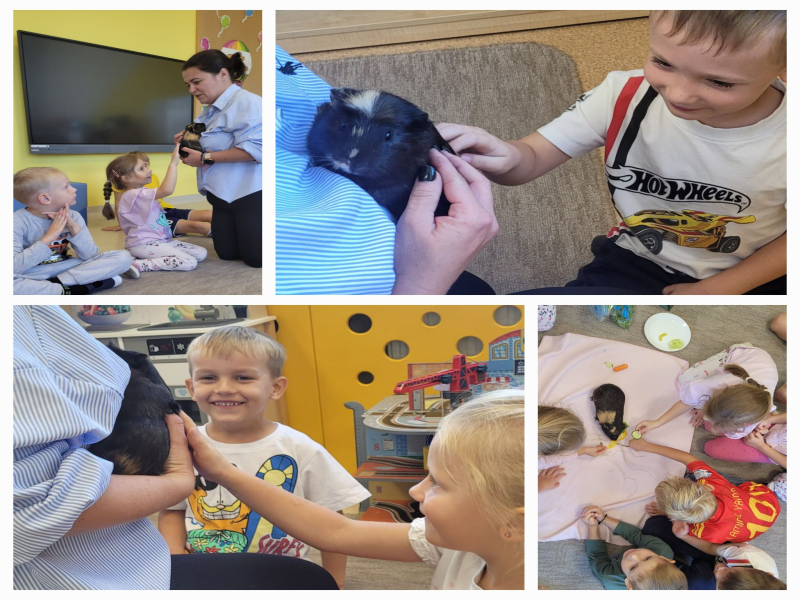 Pierwszego dnia gościem była świnka morska Burza. Dzieci dowiedziały się, co lubi jeść, jak należy się nią opiekować i czego potrzebuje, by czuć się bezpiecznie. Najwięcej radości sprawiła możliwość pogłaskania Burzy i obserwowania, jak porusza się po klatce.