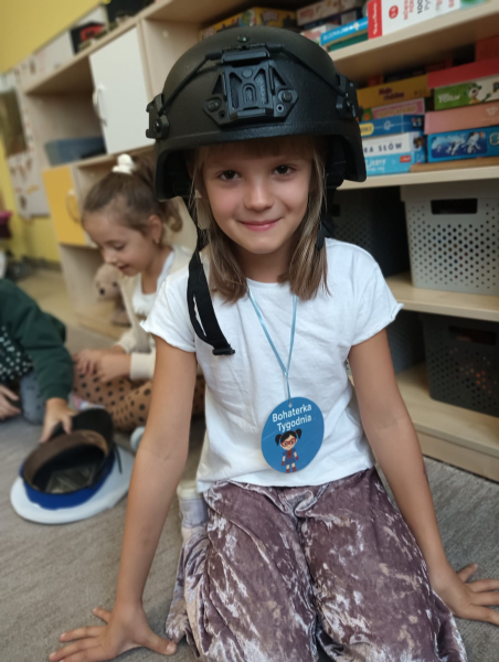Na zakończenie spotkania każde dziecko mogło przymierzyć policyjną czapkę i zrobić sobie pamiątkowe zdjęcie. Nasza Bohaterka Tygodnia – Julka – otrzymała medal i dyplom w podziękowaniu za wspaniały tydzień pełen emocji i ciekawych wrażeń.