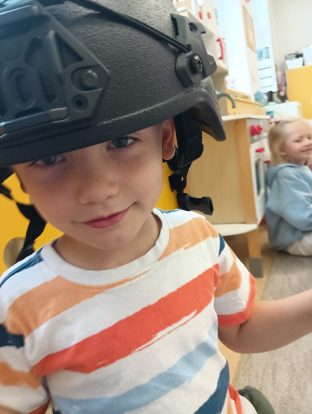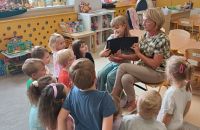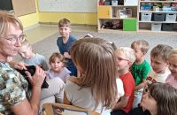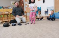 Nie zabrakło też wyjątkowego gościa! Julkę odwiedził jej tata, który pracuje jako policjant. Opowiedział dzieciom o swojej pracy, pokazał elementy stroju policyjnego oraz różne akcesoria, których używa podczas służby. Dzieci z dużym zaciekawieniem słuchały opowieści o codziennych zadaniach policjanta.
