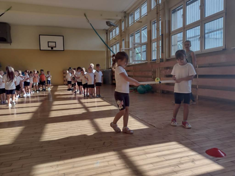 W ramach zajęć z "Klubu zdrowego przedszkolaka" dzieci z grup "Jeżyki" i "Mrówki" wzięły udział w Sportowym Dniu Przedszkolaka. Poprzez zabawę w duchu fair play dzieci utrwalały zdrowe nawyki związane z podejmowaniem aktywności fizycznej.
