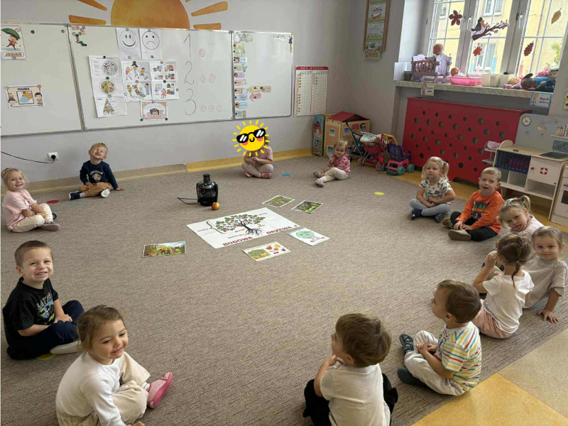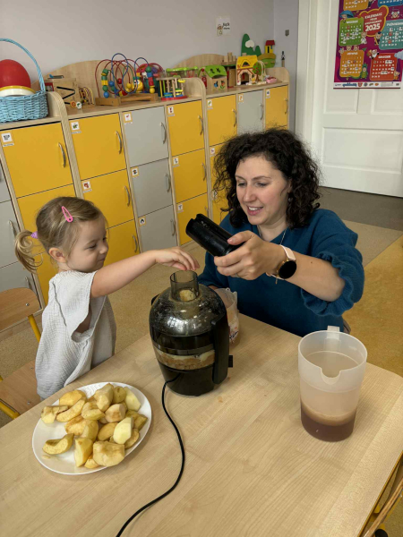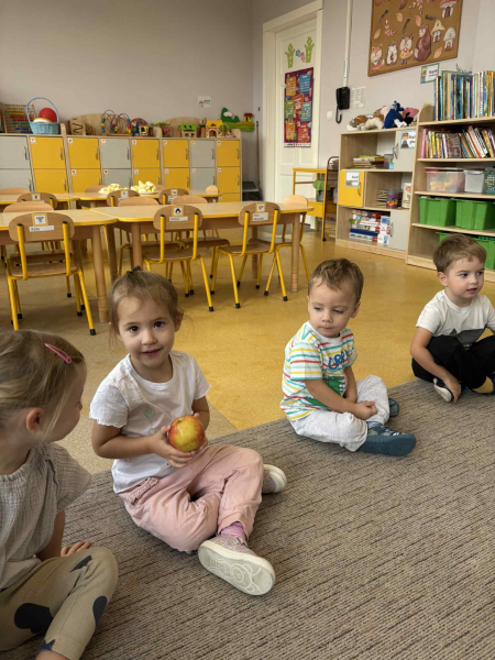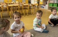 W przedszkolu obchodziliśmy Dzień Jabłka. Dzieci przyniosły swoje jabłka, z których wspólnie. Podczas zajęć poznały działanie sokowirówki oraz dowiedziały się, gdzie rosną jabłka, jak nazywa się drzewo owocowe- jabłoń- i miejsce w którym rośnie wiele jabłoni czyli sad. Na zakończenie zajęć dzieci łączyły jabłka w pary, utrwalając zdobytą wiedzę w formie zabawy.