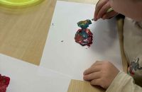 Podczas zajęć dzieci wykonywały ćwiczenia oddechowe z wykorzystaniem słomek oraz farb.
