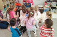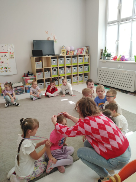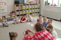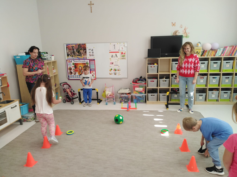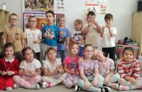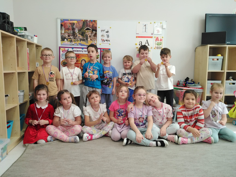 "Bohaterem Tygodnia" był nasz Franek. Wiemy, że jest kibicem i świetnym piłkarzem w swoim klubie rodzinnym - radzionkowskim. Ma sporo kuzynek i cudowną ciocię. Jest wesołym i baaardzo ruchliwym (wysportowanym) dzieckiem. Mama Franka zorganizowała dla nas małe zawody sportowe, z których na pamiątkę każdy dostał medal oraz gwizdek. Na zakończenie dzieci dostały śliczne naklejki z leśnymi zwierzętami, z których to z kolei powstały prace plastyczne. Bardzo dziękujemy mamie Franka za niespodzianki dla dzieci oraz mile spędzony czas.