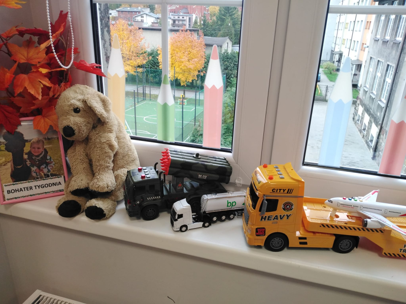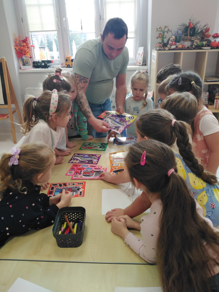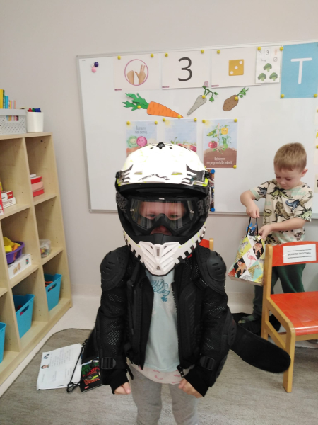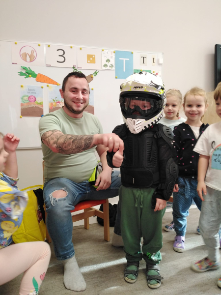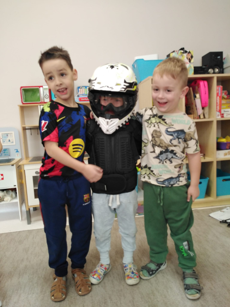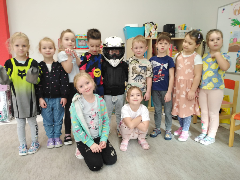 W tym tygodniu naszym Bohaterem Tygodnia był Igor,który ma niezłą kolekcję różnych wozów. Chlopcy ucieszyli się niezmiernie, bo to zabawki w ich klimacie. Odwiedził nas dzisiaj tata Igora, który opowiedział o ich pasji - przejażdżkach quadem i wyścigach na gokartach. Igor w przyszłości - jak wszyscy dobrze zgadliśmy- chce zostać kierowcą wyścigowym. Wszystkie dzieci mogły poczuć się jak kierowca rajdowy i przymierzyć specjalny strój, który chroni kierowcę oraz kask i specjalne okulary. Na zakończenie dzieci wykonały pracę plastyczną z otrzymanych naklejek różnych wozów. Bardzo dziękujemy za mile spędzony czas oraz niespodzianki dla dzieci.