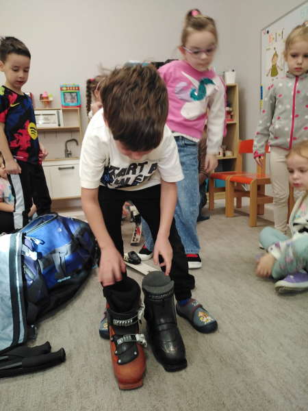 W tym tygodniu naszym Bohaterem Tygodnia jest Ignacy ,który dzisiaj razem ze swoimi Rodzicami podzielił się swoją narciarską pasją. Nasz Bohater jest bardzo odważny - potrafi zjeżdżać naprawdę z wysokich gór. W specjalnym stroju jest jak profesjonalista. Dzieci mogły się przekonać, że jazda na nartach nie jest wcale prosta, a i buty są ciężkie - brakowało nam tylko śniegu... Na zakończenie spotkania z Rodzicami Ignasia każde dziecko mogło zrobić swoje wymarzone auto (poszły w ruch kleje brokatowe, brylanciki cekinowe) Bardzo dziękujemy Rodzicom Ignasia za odwiedziny i słodką niespodziankę. Było nam bardzo miło.