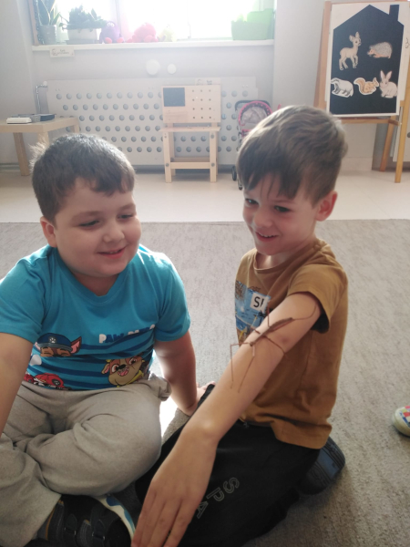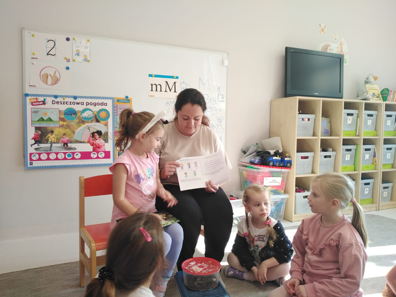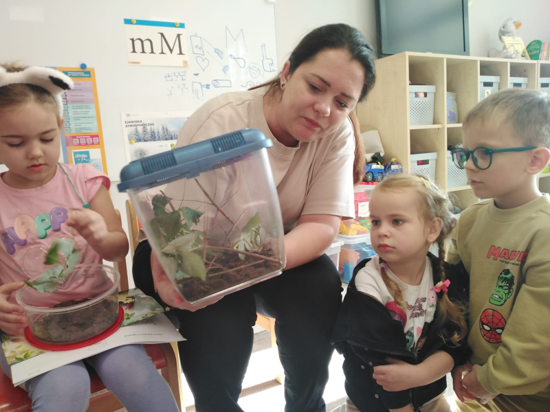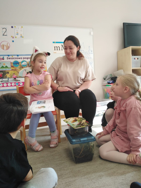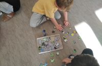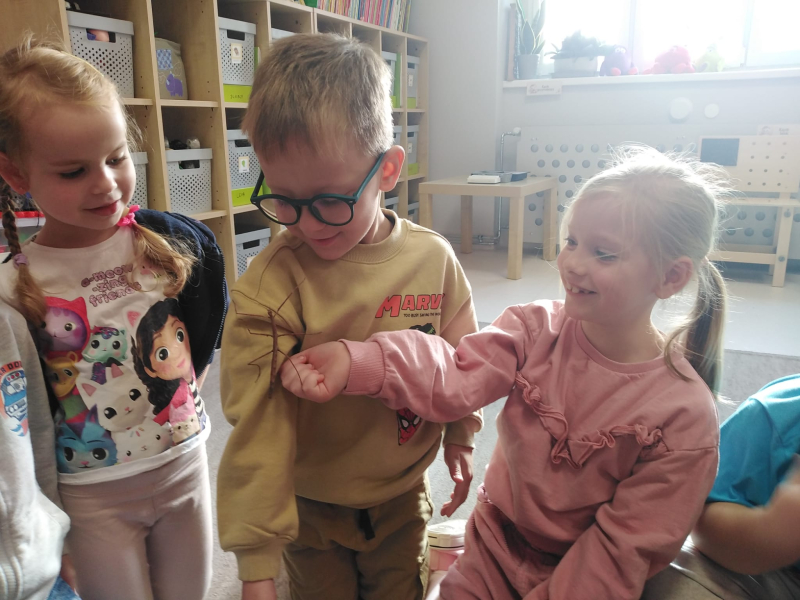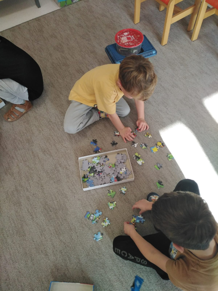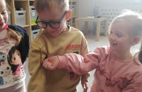 Gościliśmy mamę naszej bohaterki - Jagódki, która opowiedziała o naszej bohaterce i ich rodzinnej pasji, którą jest układania puzzli. Odbyły się mini - zawody układania 100 elementowych puzzli. Chłopcy okazali się bardzo szybcy. Oprócz tego mieliśmy przyjemność zobaczyć zwierzątka Jagódki i jej brata czyli patyczaki. Niektórzy odważniejsi nie bali się wziąć ich na rękę. Bardzo dziękujemy za miłe, spotkanie i słodkie wypieki mamy.