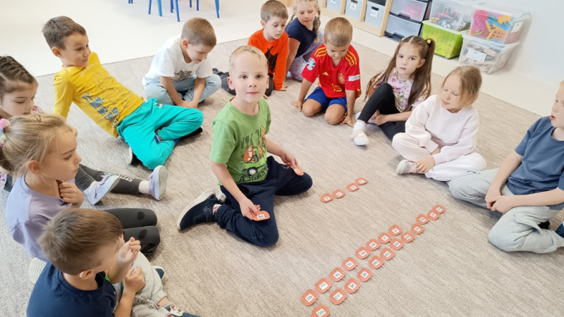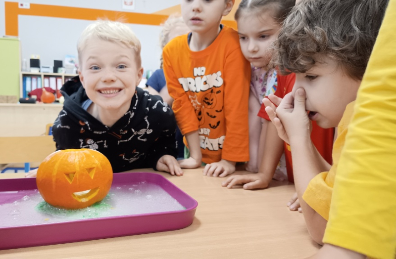 Pod koniec października w naszej grupie świętowaliśmy Dzień dyni. Dzieci mogły wziąć udział w ciekawych zabawach ruchowych ćwicząc swoje zmysły. Za pomocą dłoni rozpoznawały rodzaje dyni ukryte w pojemnikach oraz dzięki zmysłom wzroku i węchu wykonały eksperyment z "wybuchającą dynią". Przedszkolacy z naszej grupy ćwiczą również umiejętności czytelnicze poprzez dopasowywanie takich samych sylab znajdujących się na papierowych dyniach. Na zakończenie zajęć "Mrówki" wykonały jesienną krzyżówkę utrwalając poznane litery. To był aktywny dzień!