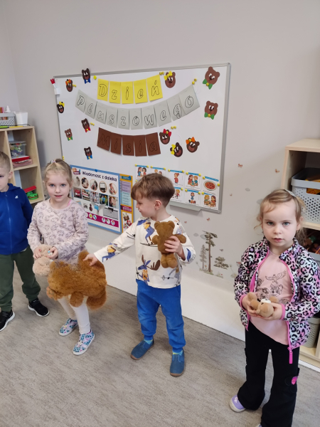 W dniu 25.11. obchodziliśmy Dzień Pluszowego Misia. Dzieci przyszły do przedszkola ze swoimi ulubionymi pluszakami, a każdy miś stał się bohaterem dnia. Były wspólne tańce i piosenki o misiach, ale także zadania i historia powstania tej najpopularniejszej przytulanki. Pluszowi przyjaciele towarzyszyli dzieciom w każdej aktywności, a cały dzień stał się okazją do integracji i dzielenia się radością.