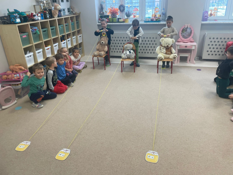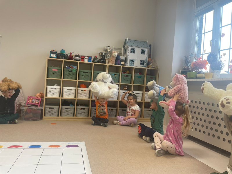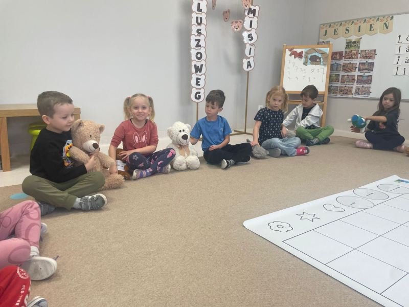 25 września obchodziliśmy Dzień Pluszowego Misia. Z tej okazji dzieci przyniosły do przedszkola swoje ukochane pluszaki. Na zajęciach przedstawiły swoje misie, a następnie wspólnie przywitaliśmy się piosenką - "Do przedszkola przyszedł miś". W czasie zajęć wykonywaliśmy różne misiowe zadania m.in. kodowaliśmy misie ze względu na wielkość i kolor, układaliśmy literkowe misie, a zwieńczeniem zajęć była zabawa "Nakarm misia", która wprowadziła mały element rywalizacji. Cały dzień upłynął nam w miłej atmosferze, a dzieciaki zgodnie stwierdziły, że pluszowy miś to prawdziwy przyjaciel przedszkolaków.