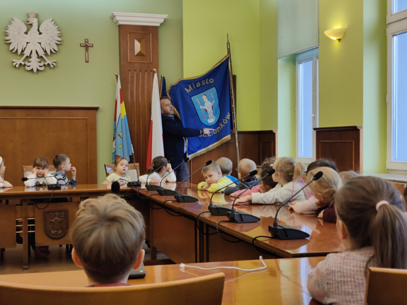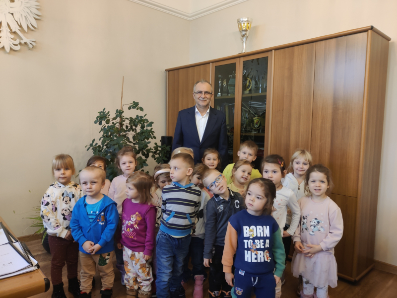 Dzieci z grup Żabki, Biedronki i Jeżyki wybrały się do Urzędu Miasta w Radzionkowie, gdzie mogły zobaczyć budynek, zasiąść na sali plenarnej, dowiedziały się także jaki święty jest patronem miasta i szukały wizerunku Św. Wojciecha w różnych miejscach budynku. Przedszkolaki odwiedziły również, w swoim gabinecie Pana burmistrza, gdzie mogły zadać pytania lub zgłosić jakąś sprawę, jako mieszkańcy Radzionkowa.