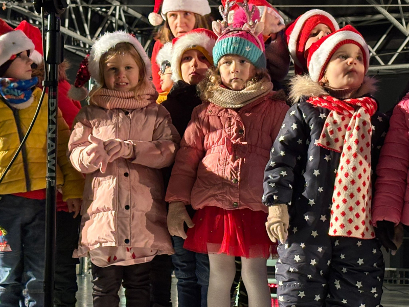 W dniu 6 grudnia dzieci z naszego Przedszkola wzięły udział w plenerowej imprezie mikołajkowej zorganizowanej na EkoRynku. Podczas wydarzenia przedszkolaki zaprezentowały przygotowany specjalnie na tę okazję program artystyczny. Dzieci pięknie zaśpiewały świąteczne piosenki oraz wykonały układy taneczne, wprowadzając zgromadzoną publiczność w radosny, świąteczny nastrój. Występ został nagrodzony gromkimi brawami, a udział w wydarzeniu był dla dzieci wspaniałym przeżyciem i okazją do wspólnej, mikołajkowej zabawy.