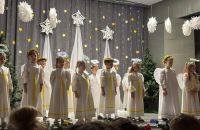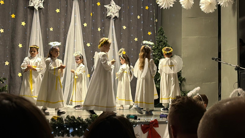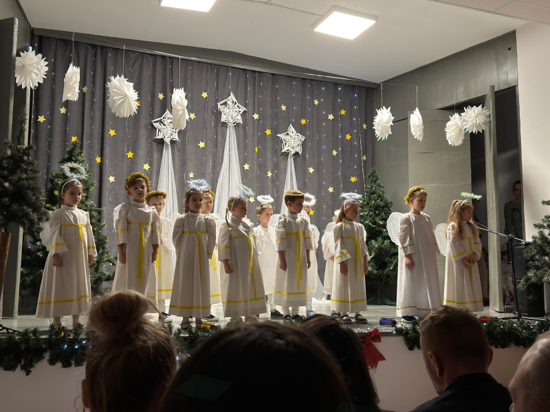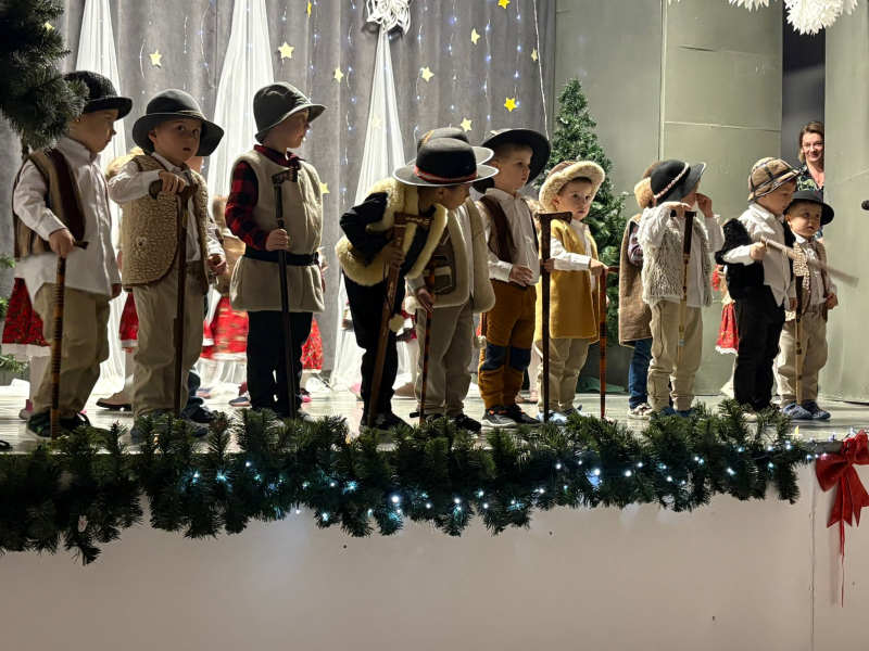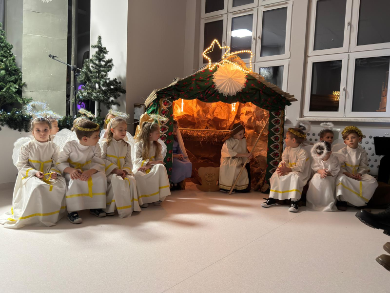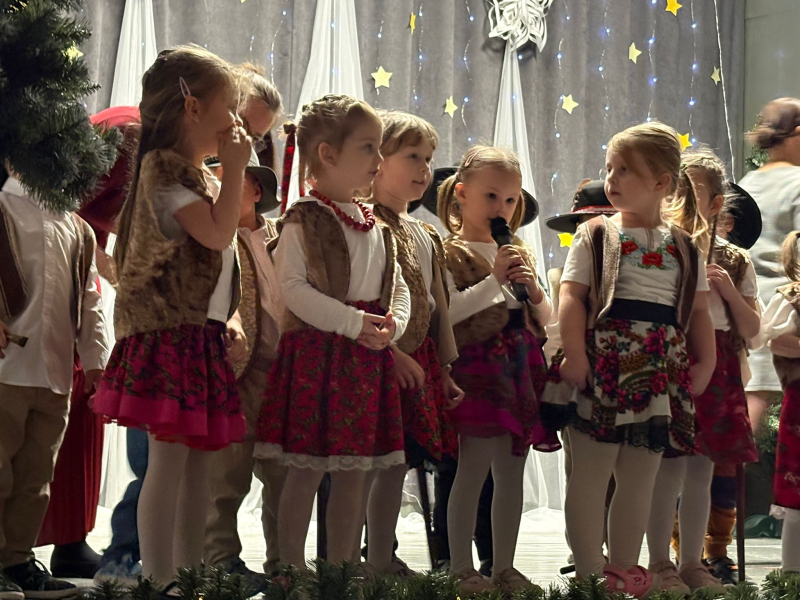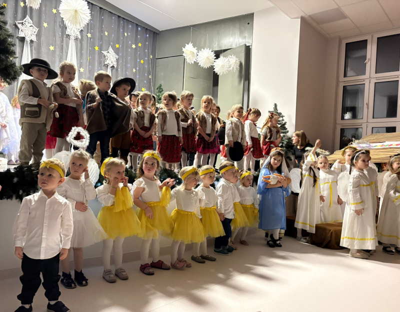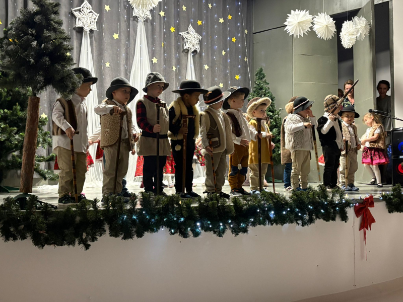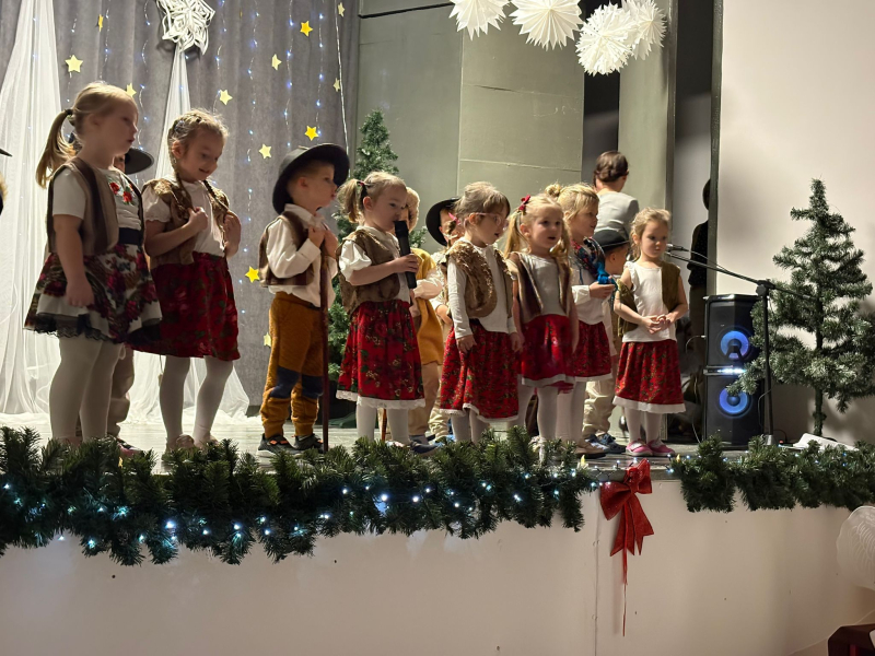 W kolejnym dniu Jasełek w przedszkolu odbyło się przedstawienie grup: Słoneczka, Motylki, Żabki, Stokrotki, Myszki i Mrówki, w którym wszystkie grupy zaprezentowały piękne, świąteczną historię. Maryja i Józef z Dzieciątkiem, aniołowie, pasterze, Trzej Królowie oraz Pory Roku stworzyli barwną i wzruszającą opowieść o narodzeniu Jezusa. Dzieci śpiewały kolędy, recytowały wiersze i tańczyły, wprowadzając wszystkich w wyjątkowy, bożonarodzeniowy nastrój. Całość zakończyło wspólne kolędowanie przy szopce, pełne świątecznej magii.