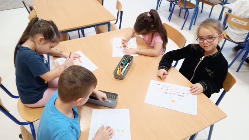 Tym razem w ramach realizacji kolejnych zadań z projektu: Utrwalamy zasady zdrowego żywienia oraz sprawdzamy wiadomości na temat zdrowej żywności. Poznajemy zasady zdrowego żywienia: piramidę zdrowia i tworzymy własne piramidy wg podanego wzorca oraz dowiadujemy się skąd się bierze i co to jest ekologiczna żywność. Rozwiązujemy zagadki i quizy dotyczące zdrowego odżywiania.