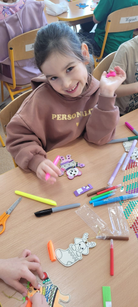 Milena z radością opowiedziała dzieciom o sobie oraz o swoich ulubionych zabawkach, które bardzo lubi i chętnie wykorzystuje do zabawy. Podzieliła się także opowieściami o tym, że często jeździ na wycieczki razem z rodzicami i bratem, co sprawia jej dużo radości.