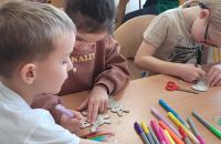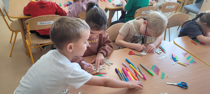 Na zakończenie spotkania mama Mileny wspólnie z dziećmi przygotowała piękne, kolorowe bombki na choinki. Było to bardzo twórcze i radosne zajęcie, które sprawiło wszystkim dużo frajdy.
