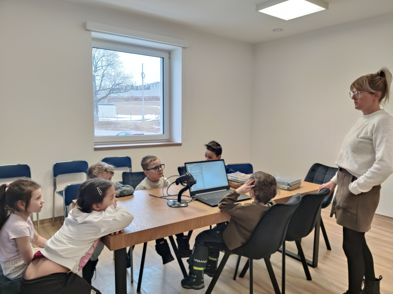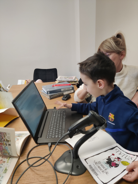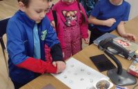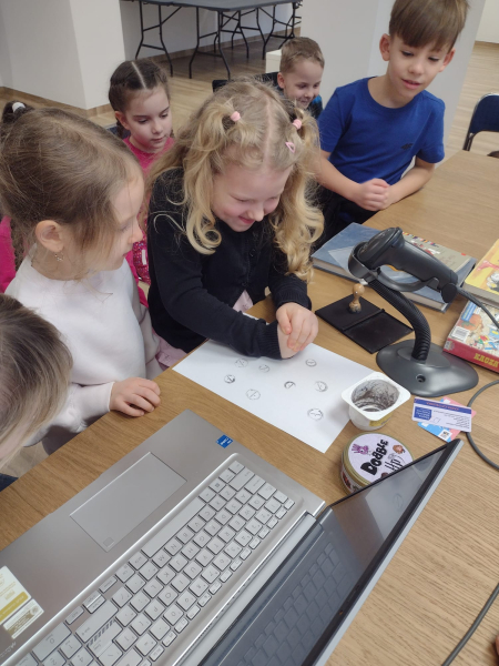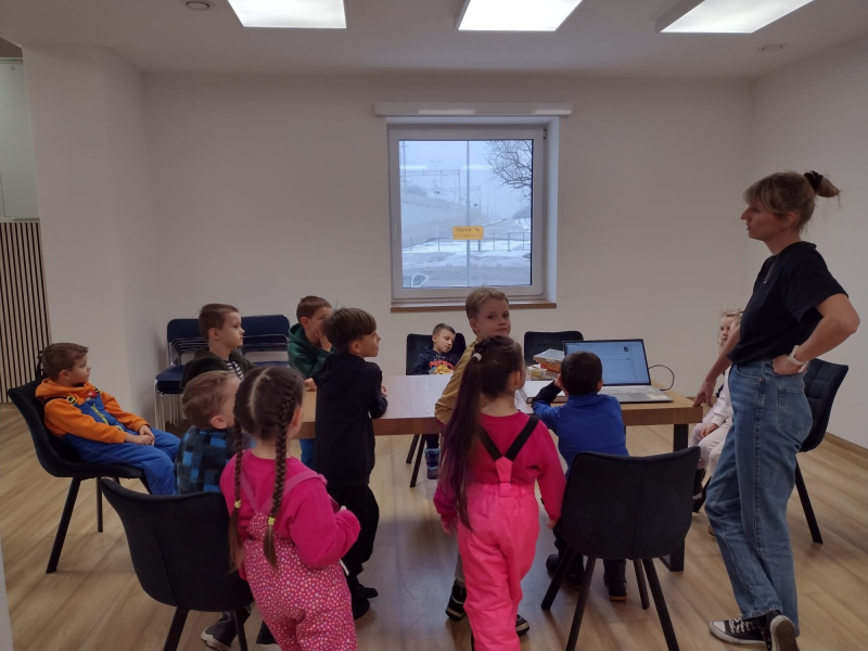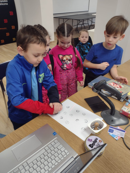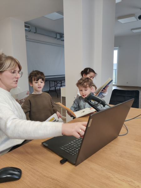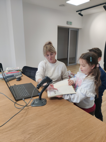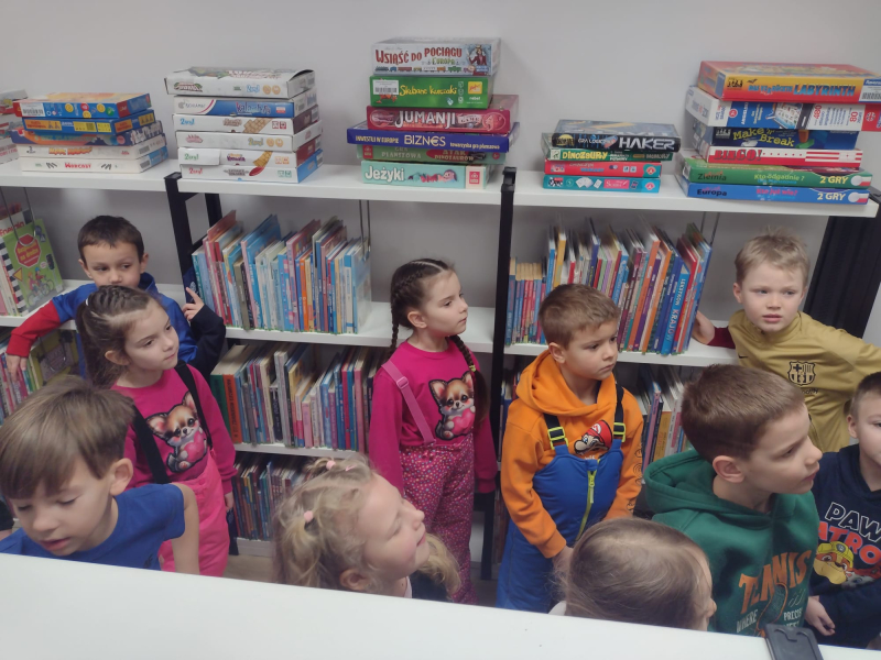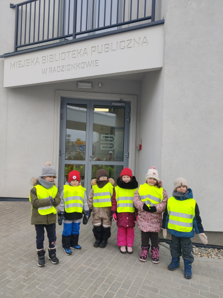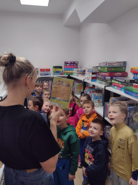 Dzieci z grup 5 i 6 - latków wzięły udział w wycieczce pieszej do nowej siedziby Miejskiej Biblioteki Publicznej w Radzionkowie. Dzieci miały okazję zobaczyć jak wygląda praca w bibliotece, a także wcielić się w rolę bibliotekarza i przejść cały proces od pojawienia się książki w bibliotece, do wypożyczenia czytelnikowi. Pani prowadząca opowiedziała również o książkach, od strony technicznej - autor, tytuł, okładka, ilustracje, a dzieci miały okazję zeskanować kody i wyszukać książki w systemie. Dzieci zwiedziły także część biblioteki przeznaczoną dla najmłodszych czytelników, a na pamiątke wizyty każdy otrzymał zakładkę do książki. Celem wizyty było zapoznanie dzieci z funkcjonowaniem biblioteki, rozwijanie zainteresowań czytelniczych oraz kształtowanie nawyku sięgania po książki.