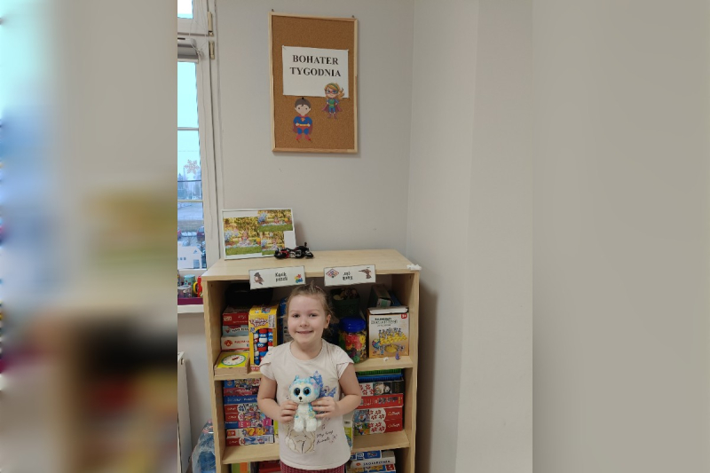 W kąciku bohaterki pojawił się uroczy pluszak, którym Antosia z radością dzieliła się z innymi dziećmi, ucząc się przy tym empatii i współpracy.