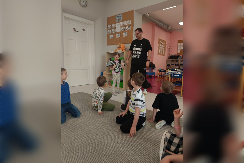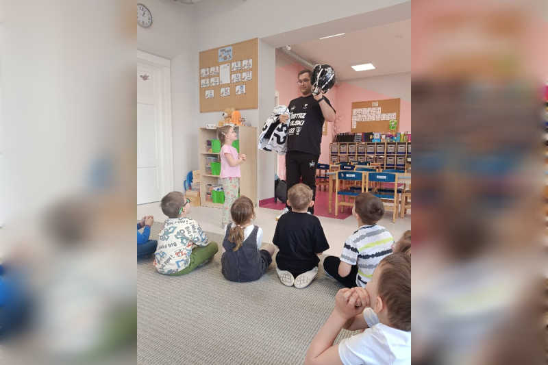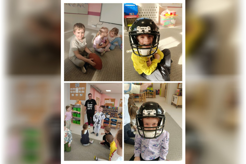 Niezwykłą atrakcją tygodnia była wizyta gościa specjalnego – taty Oli, pana Piotra, który trenował futbol amerykański. Podzielił się z dziećmi swoją pasją, opowiedział o swoim hobby oraz zaprezentował strój niezbędny do uprawiania tego sportu, piłki oraz medale zdobyte w zawodach.