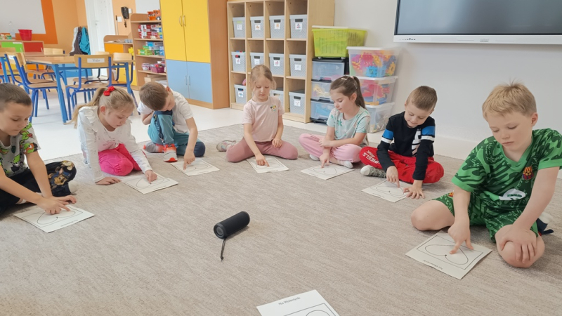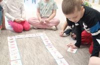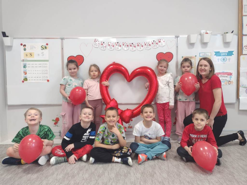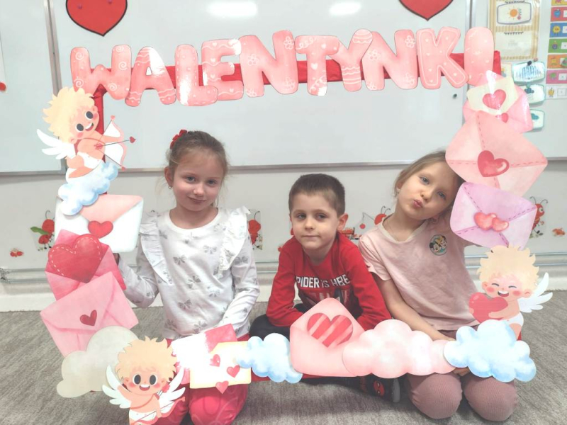 Na początku dzieci wzięły udział w zabawie dydaktycznej „Ja mam, kto ma?”, która rozwijała spostrzegawczość, koncentrację oraz umiejętność uważnego słuchania. Przedszkolaki z wielkim zaangażowaniem odczytywały swoje karty i szukały właściwych odpowiedzi. Kolejnym punktem dnia było ćwiczenie muzyczno-ruchowe z wykorzystaniem muzogramu do piosenki „Małe serce”. Dzieci słuchały utworu, śledziły symbole w muzogramie i wykonywały odpowiednie ruchy w rytm muzyki. Było to doskonałe połączenie zabawy z rozwijaniem poczucia rytmu i koordynacji. Nie mogło zabraknąć również pracy plastycznej. „Mrówki” z ogromnym zaangażowaniem tworzyły piękne, kolorowe walentynki dla swoich bliskich. Dzieci wykazały się kreatywnością i starannością, wkładając w swoje prace wiele serca. Na zakończenie wszyscy chętnie pozowali do pamiątkowych zdjęć na specjalnie przygotowanej serduszkowej ściance, która stała się wyjątkowym tłem dla pełnych radości fotografii.