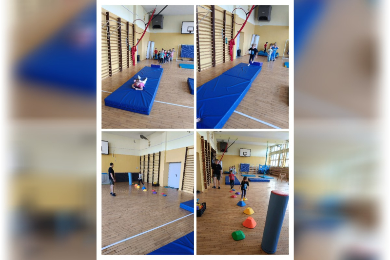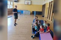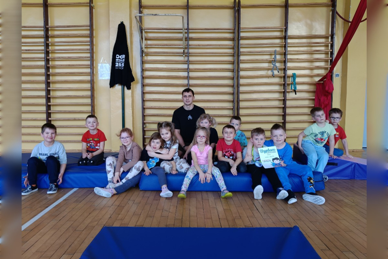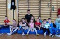Wyjątkowym wydarzeniem była także wizyta gościa bohatera tygodnia – wujka Karola, który prowadzi zajęcia sportowe dla dzieci i pracuje jako trener personalny. Podczas spotkania w naszej sali gimnastycznej przygotował dla przedszkolaków ciekawe zabawy ruchowe oraz tor przeszkód. Dzieci z ogromnym zaangażowaniem pokonywały kolejne zadania, ćwicząc sprawność, równowagę i koordynację ruchową.