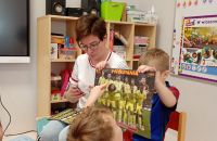 W piątek tj. 27 marca "Jeżyki" gościły mamę Filipa naszego Bohatera Tygodnia. Filip to piłkarz, który nie tylko świetnie gra na boisku, ale także kolekcjoner kart piłkarskich, zagorzały kibic i oddany członek swojej radzionkowskiej piłkarskiej drużynie. Filip to także wspaniały brat, który niesamowicie potrafi opiekować się swoim młodszym rodzeństwem. Zna się też na flagach państw i ma swoją ulubioną książkę - Atlas z różnymi państwami, gdzie można się dowiedzieć o zabytkach, zwierzętach występujących na danym terenie. Oczywiście marzeniem naszego Bohatera jest zostać piłkarzem. Filip z mamą przygotowali dla dzieci niespodzianki : drewniane jeżyki i piłeczki, które można było pokolorować i ozdobić. Bardzo dziękujemy za mile spędzony czas.