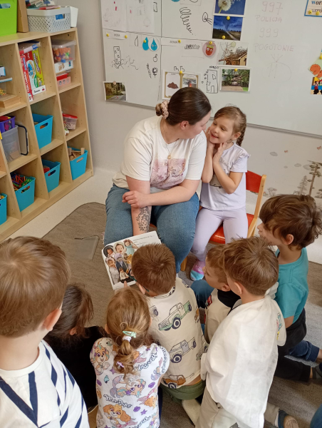 Bardzo dziękujemy mamieIgi,która odwiedziła nas w piątek. Nasza Iga była ostatnim Bohaterem z naszego projektu. Iga jest wesołą i sympatyczną dziewczynką, która już od najmłodszych lat wszystkich zadziwiała - mama Igi pokazała jej zdjęcie, kiedy jako noworodek miała pokaźną czuprynkę, a w wieku roczku włosy do ramion. Iga lubi kolor różowy, fioletowy, a najbardziej tęczowy, bo taka kolorowa jest i Iga, która świat widzi w tęczowych okularach. Jej ulubioną zabawką ostatnio jest happy hourse. Iga i jej mama zrobiły dla nas wyścigi konne. Bardzo dziękujemy za miłe spędzony czas i słodkości.