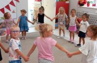 Pierwszy tydzień w przedszkolu minął dzieciom w atmosferze poznania nowego otoczenia.Dzieci poznały zasady panujące w grupie, brały udział w zabawach integracyjnych .Dużą radość sprawiły im zabawy ruchowe, swobodne oraz zabawy na placu zabaw.